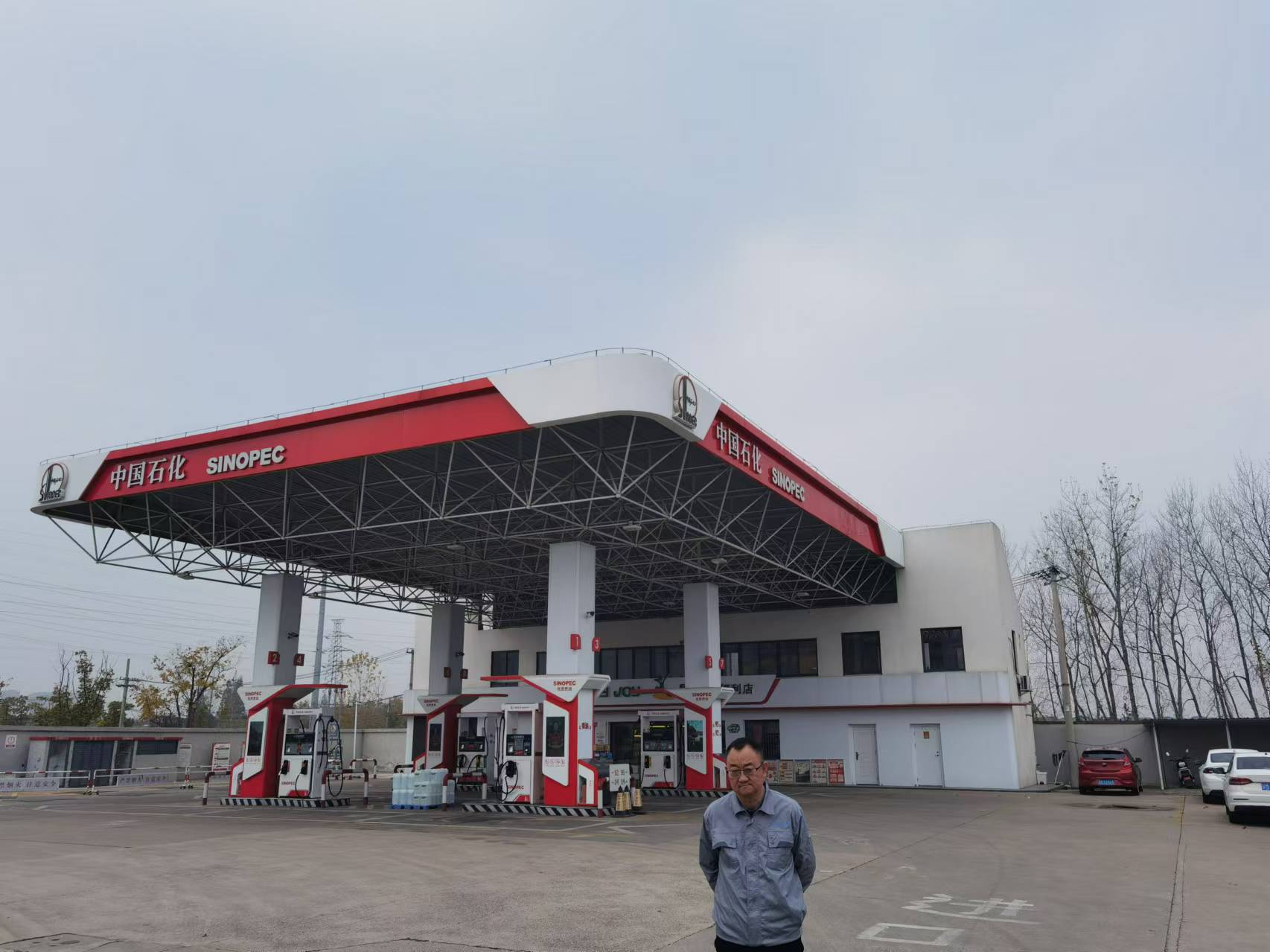 项目基本情况 | 中国石化销售股份有限公司江苏泰州苏陈加油站(以下简称中石化泰州苏陈加油站)成立于2001年03月09日,企业性质为分公司,是中国石化销售股份有限公司江苏泰州石油分公司的全资子公司,经营场所位于泰州市火车站街区西石羊村,主要从事危险化学品汽油、柴油和一般经营项目润滑油等的零售业务。 中石化泰州苏陈加油站现有从业人员8人,其中主要负责人为黄晓梅,站长为柳军,专职安全员为顾彧,均经泰州市应急管理局考核合格,取得了安全考核合格证。 中石化泰州苏陈加油站占地面积1304m2,加油站共设置3只单罐容积均为30m?埋地SF双层油罐,其中汽油罐2只(92#、95#汽油罐各1只),0#柴油罐1只,总容积为90m3,实际折算总容积为75m3(柴油罐容积折半计入油罐总容积),电脑税控加油机4台共计14枪(其中1台双枪单油品柴油加油机,3台四枪双油品汽油加油机),根据《汽车加油加气加氢站技术标准》(GB50156-2021)表3.0.9条等级划分,该加油站为三级加油站。 | |||